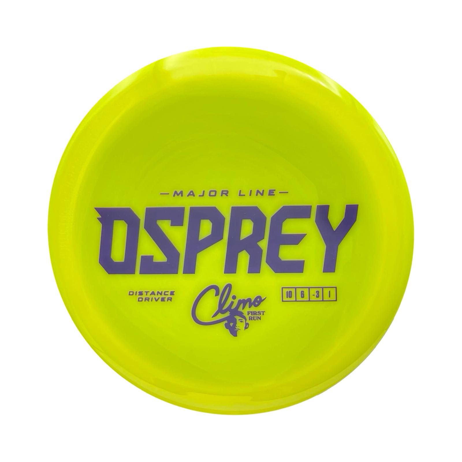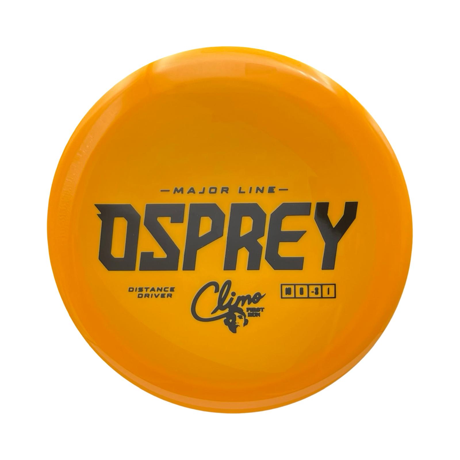 Soar through the course with the Climo Disc Golf Osprey. Sleek, fast, and graceful like its namesake, the Osprey is perfect for players seeking easy distance with a touch of finesse. This 10-speed driver is versatile enough to suit any skill level. Novice and intermediate golfers will love its controllable understability, which makes it easy to achieve long, smooth turnover shots and maximum distance. Meanwhile, advanced and pro-level players will appreciate the Osprey's ability to carve technical lines, deliver massive hyzer-flips, and glide through the air with precision, making it an indispensable tool for attacking the fairway.