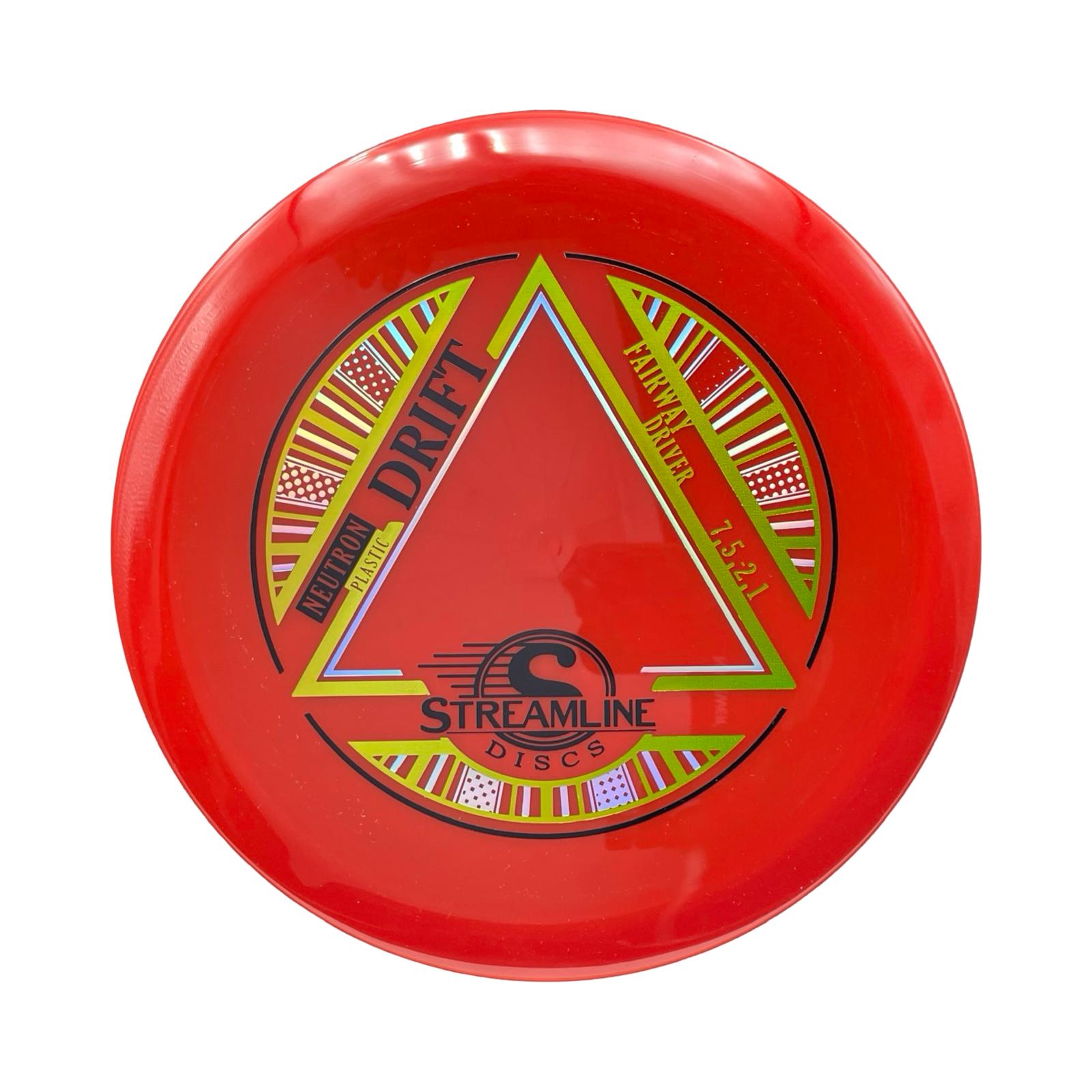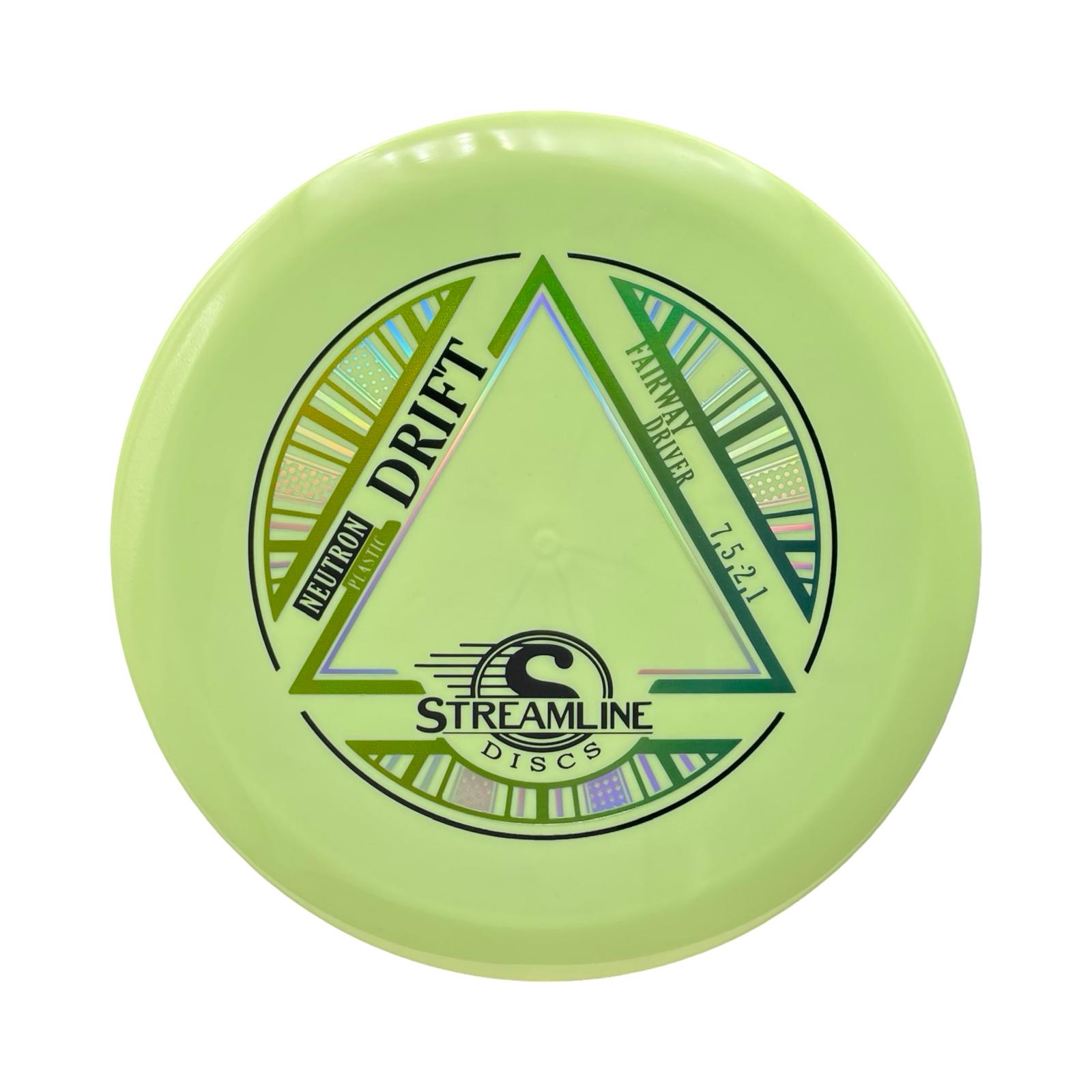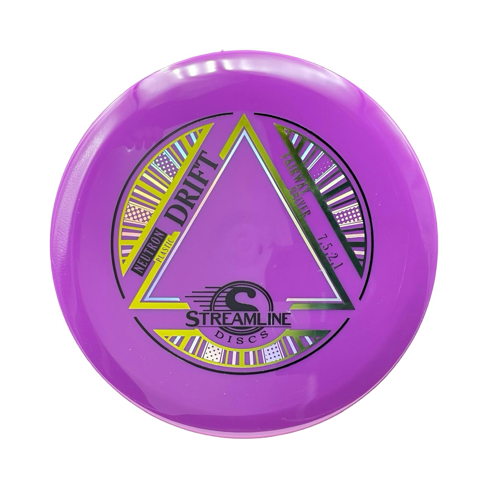 The Drift is designed for laser straight lines ending with a gentle fade and an exceptional amount of glide, providing easy distance with this highly versatile driver. The Drift has a modest rim size, a slightly domed profile, and an easily activated turn for hyzer-flips or big turnover shots. The Drift will make its grand debut in Neutron Plastic, pairing perfectly with its bright opaque colors, durability, and grip. This Speed 7 driver is the first fairway driver in the Streamline fleet and continues the trend of stunning triple-foil stock stamps.