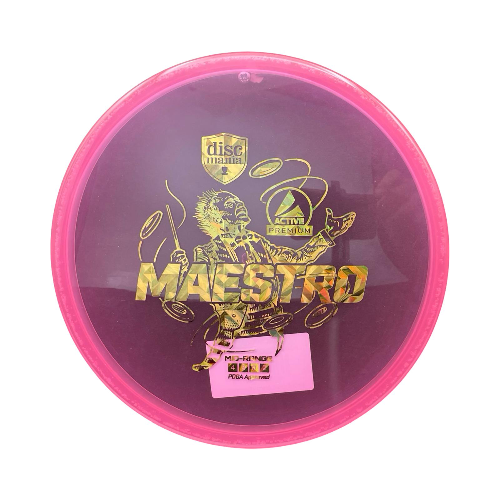 I have reviewed the Active Maestro on the site, so my thoughts on the Premium version are that it feels very durable plastic indeed, stiff enough to take more than a few tree hits with impunity. As a result, it is also much more OS in the fade. Out of the box it is practically Harp-like, and those flight numbers should read glide 3, turn 0, fade 3. I wouldn't really agree with the "slight slow speed fade" description when it comes to the premium plastic. I have played a few rounds with it now and it really comes into its own for windy approaches that need control over glide. It has some nice S-line skills on forced turnovers, provided you don't get too enthusiastically angular.