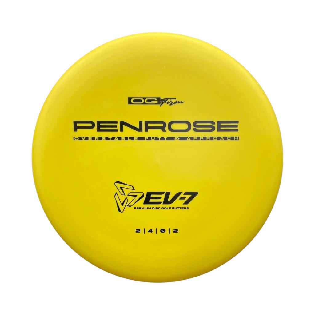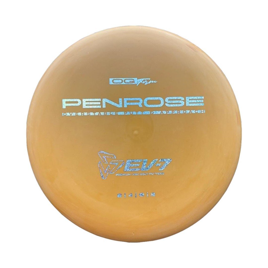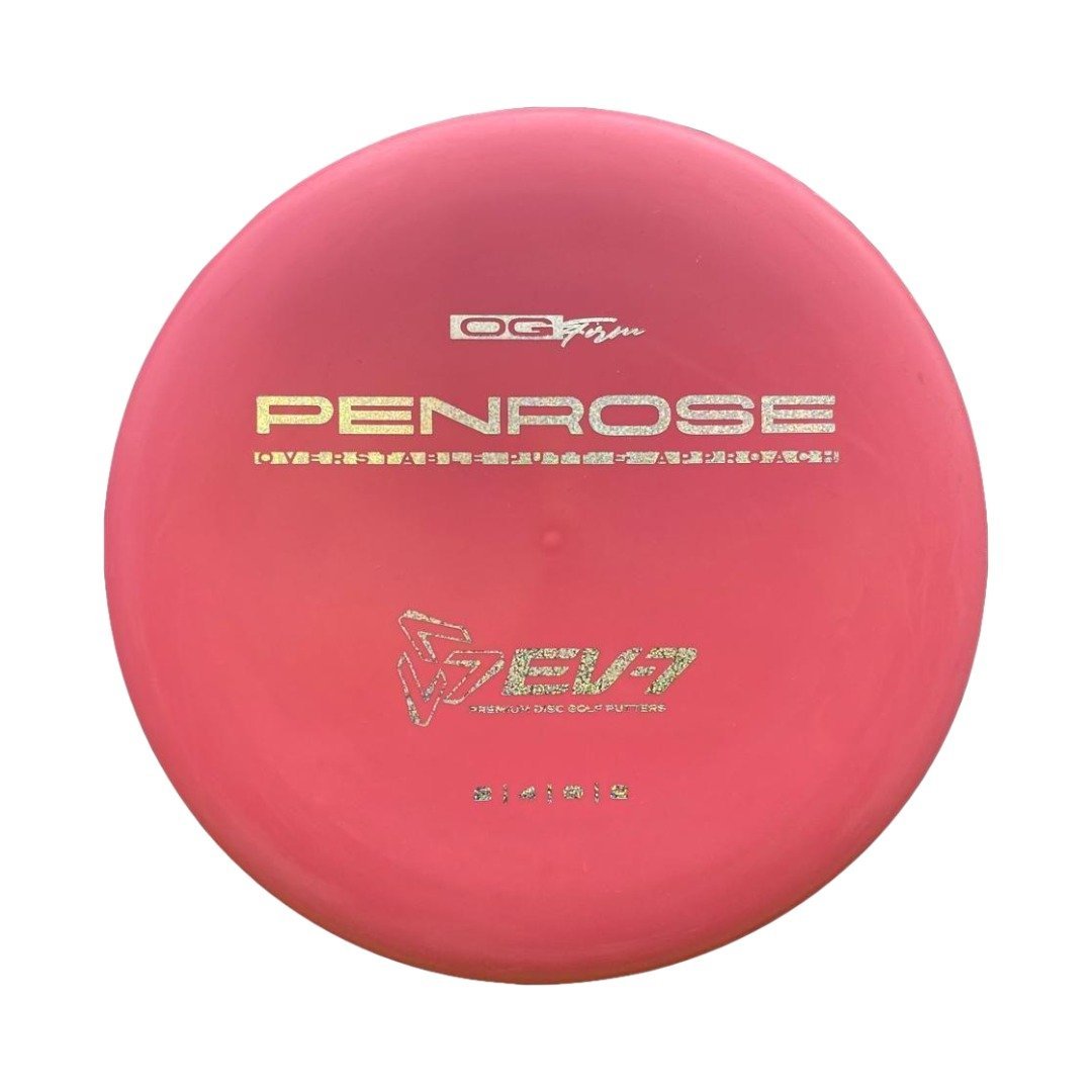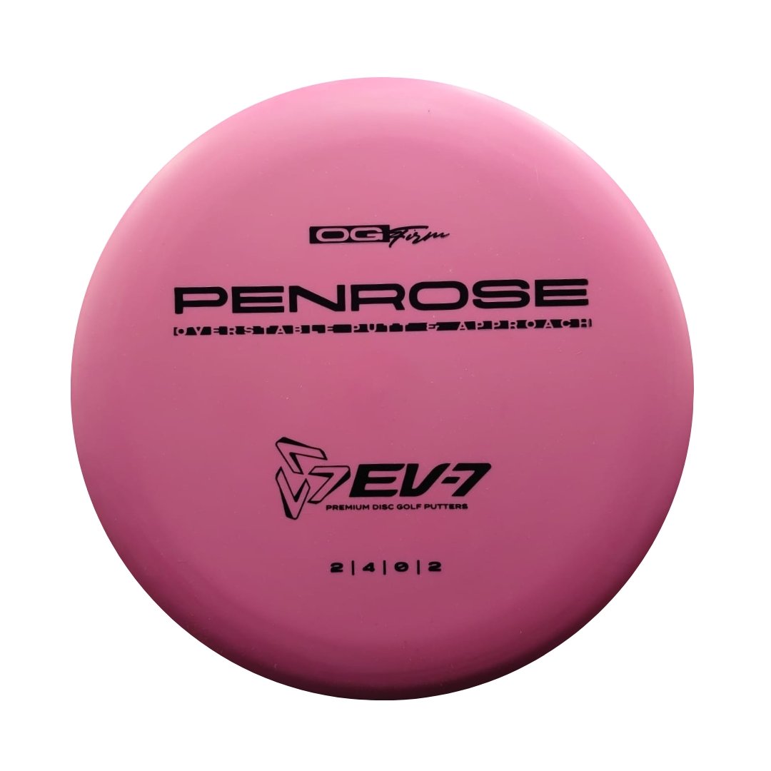 The Penrose is EV-7's debut putt and approach disc. It has reliable high-speed over stability and resistance to turn, but is uniquely straight with consistent fade at lower speeds on the putting green. With a slightly deeper profile, small bead, and smooth feel, the Penrose fits the hand comfortably, inspiring confidence for both putts and upshots.