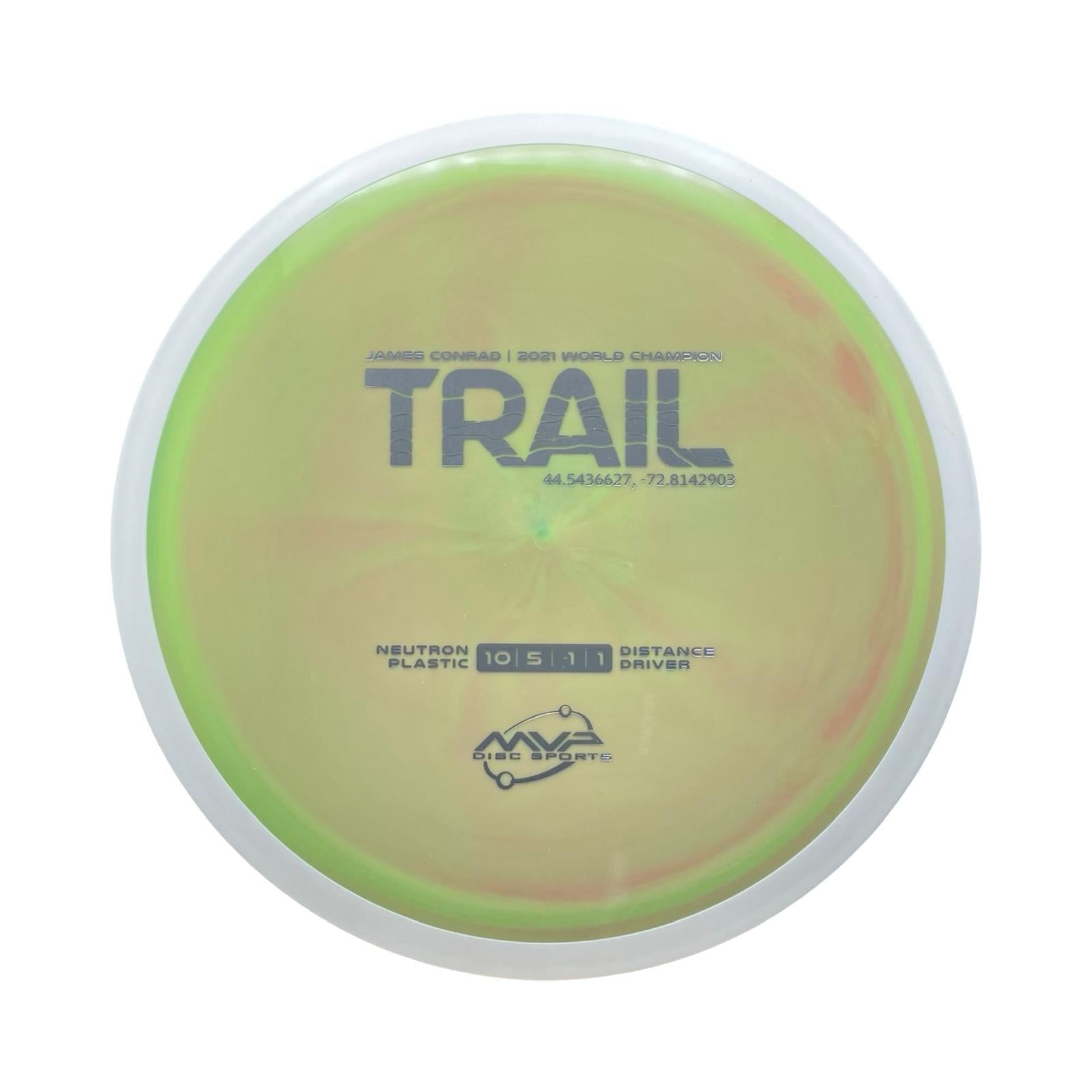 The first official 10-speed driver in the MVP lineup, the Trail is a stable-understable distance driver that, as you might expect of a Conrad disc, excels in hyzer-flip drives and turnovers.
